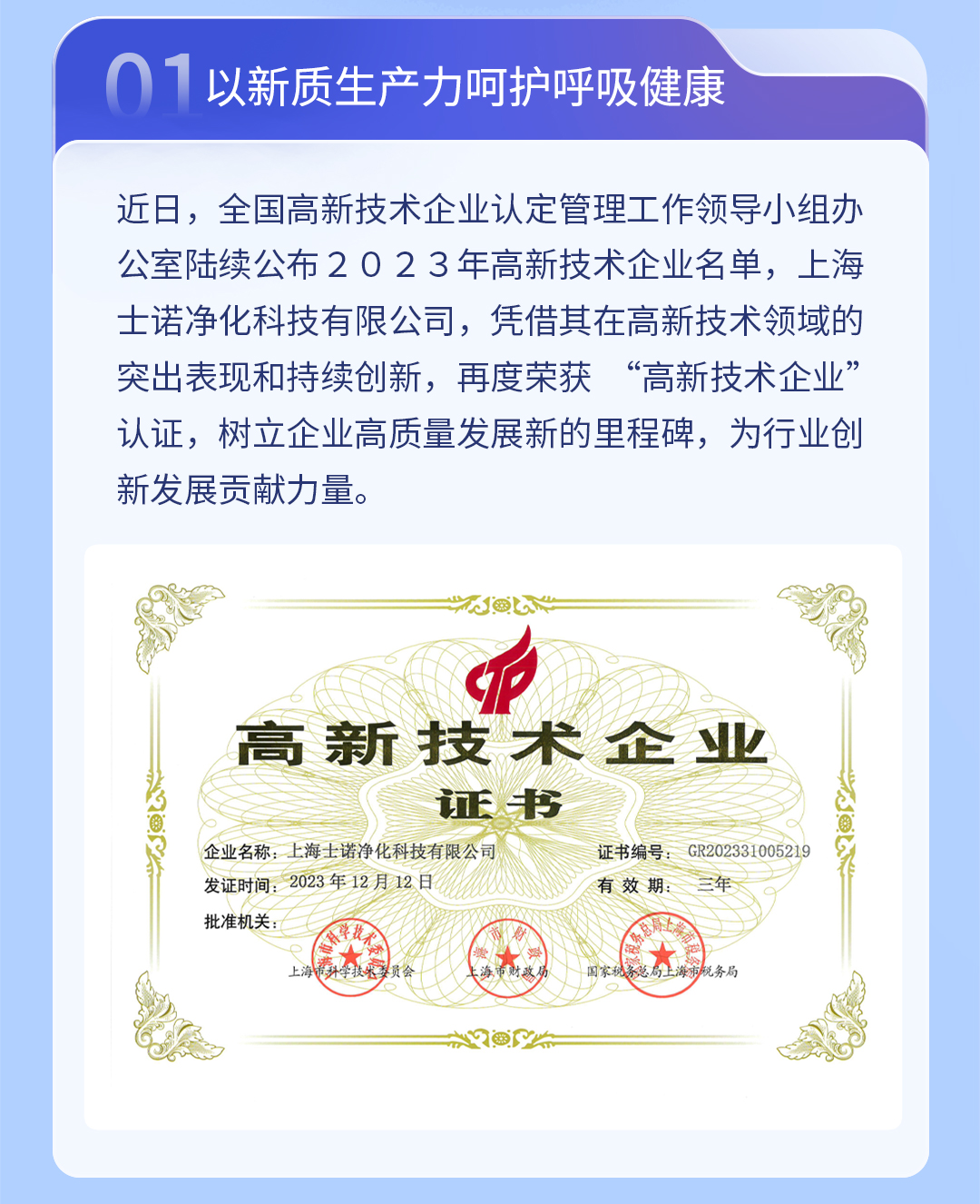 THENOW士諾再次榮獲“高新技術(shù)企業(yè)”認(rèn)定,以新質(zhì)生產(chǎn)力呵護(hù)呼吸健康