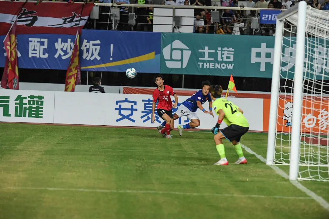 下半場進(jìn)入關(guān)鍵階段,兩隊(duì)攻勢升級。第 69 分鐘,揚(yáng)州隊(duì)抓住機(jī)會發(fā)起快攻,胡志鋒禁區(qū)內(nèi)冷靜突破射門得分,打破僵局。進(jìn)球瞬間,現(xiàn)場沸騰,士諾標(biāo)識與球迷吶喊相映成趣。